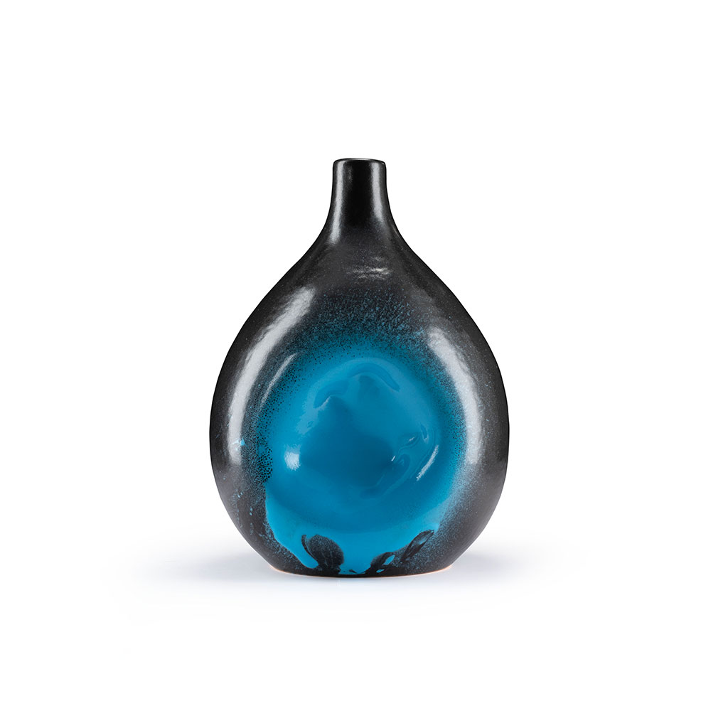 Vase Punch. Cast in porcelain stoneware. Internal and external matt black enamel with blue external punch.